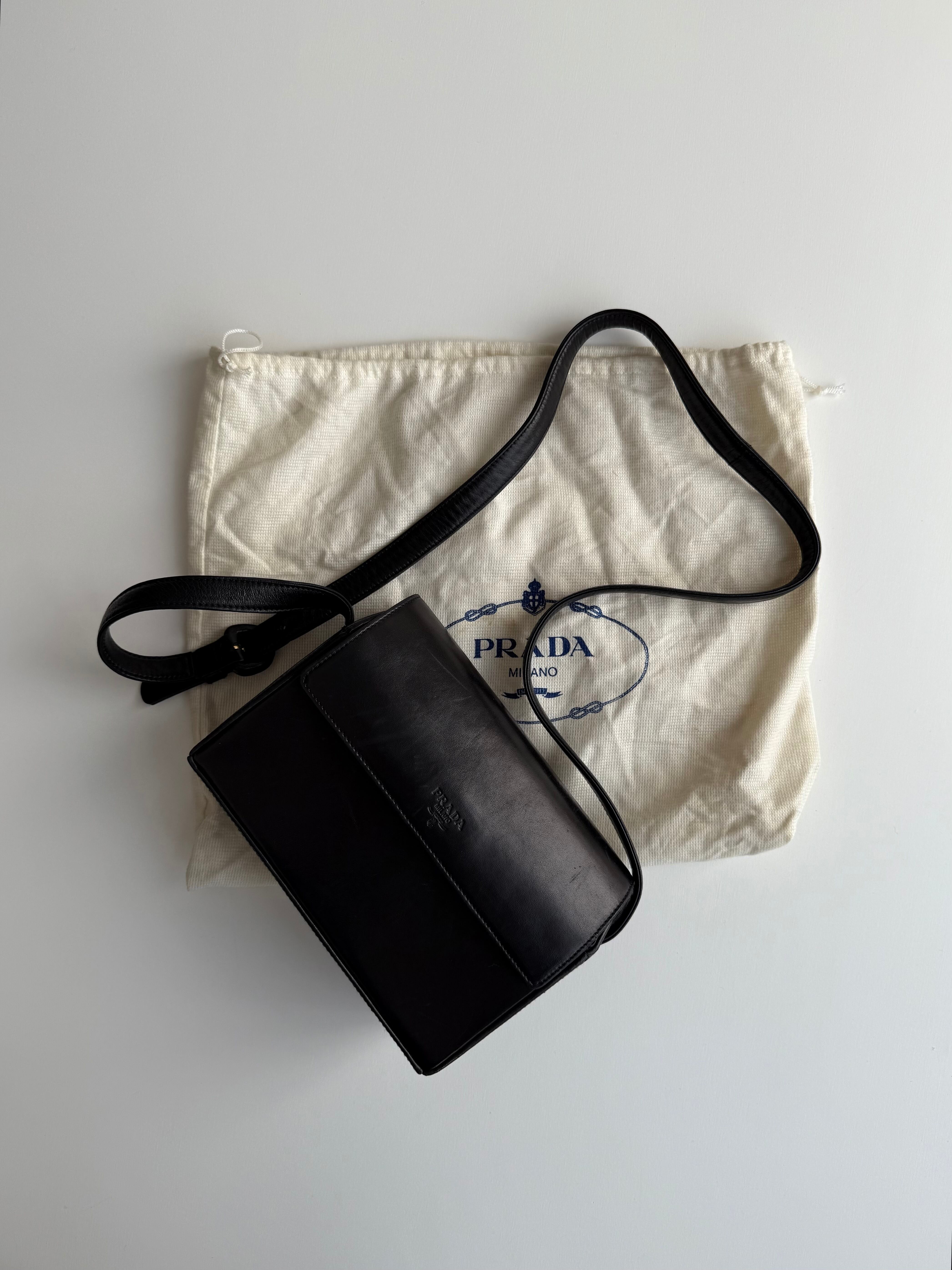 1990s PRADA LEATHER SQUARE SHOULDER BAG